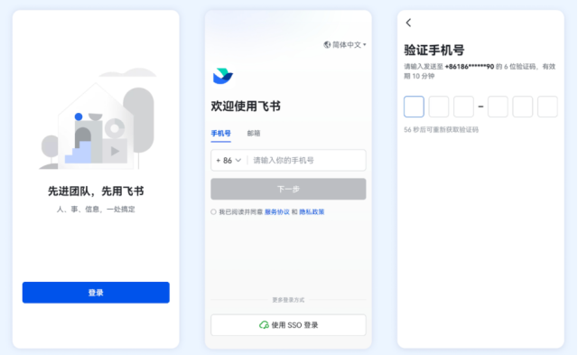 第2步:下載完成后,使用您的手機(jī)號(hào)注冊(cè)飛書(shū)賬號(hào)(如您已有飛書(shū)賬號(hào),可直接登錄)。具體注冊(cè)流程,見(jiàn)下方“附件:飛書(shū)注冊(cè)賬號(hào)操作方法”。